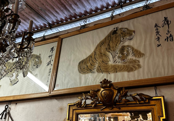 こちらのアンティーク&美術館ショップのオーナーが直接、日本で買い付けた虎の絵画です。